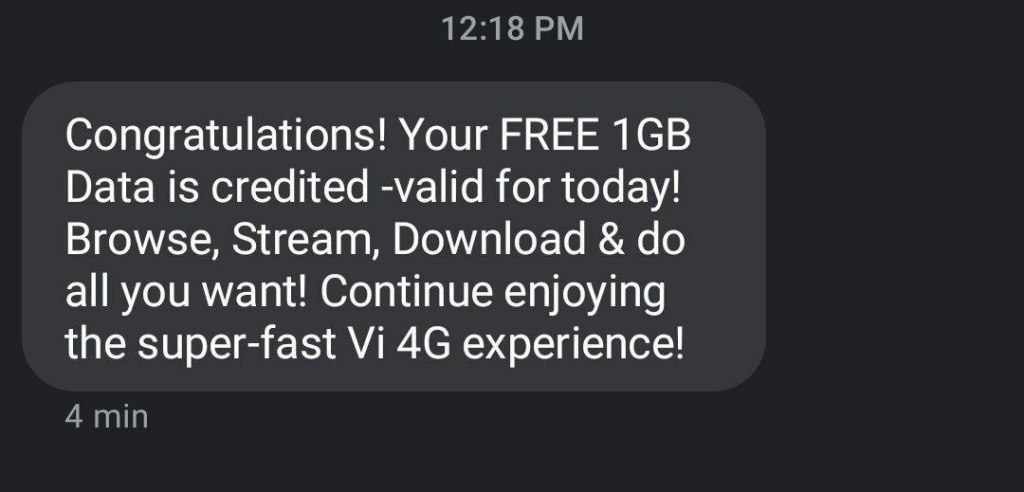 4. SMS says ‘Congratulations !! 1 GB / 2 GB data will be credited in your account’