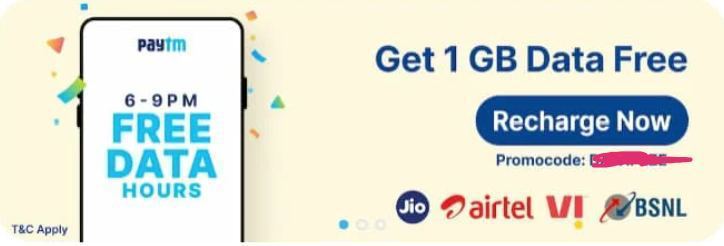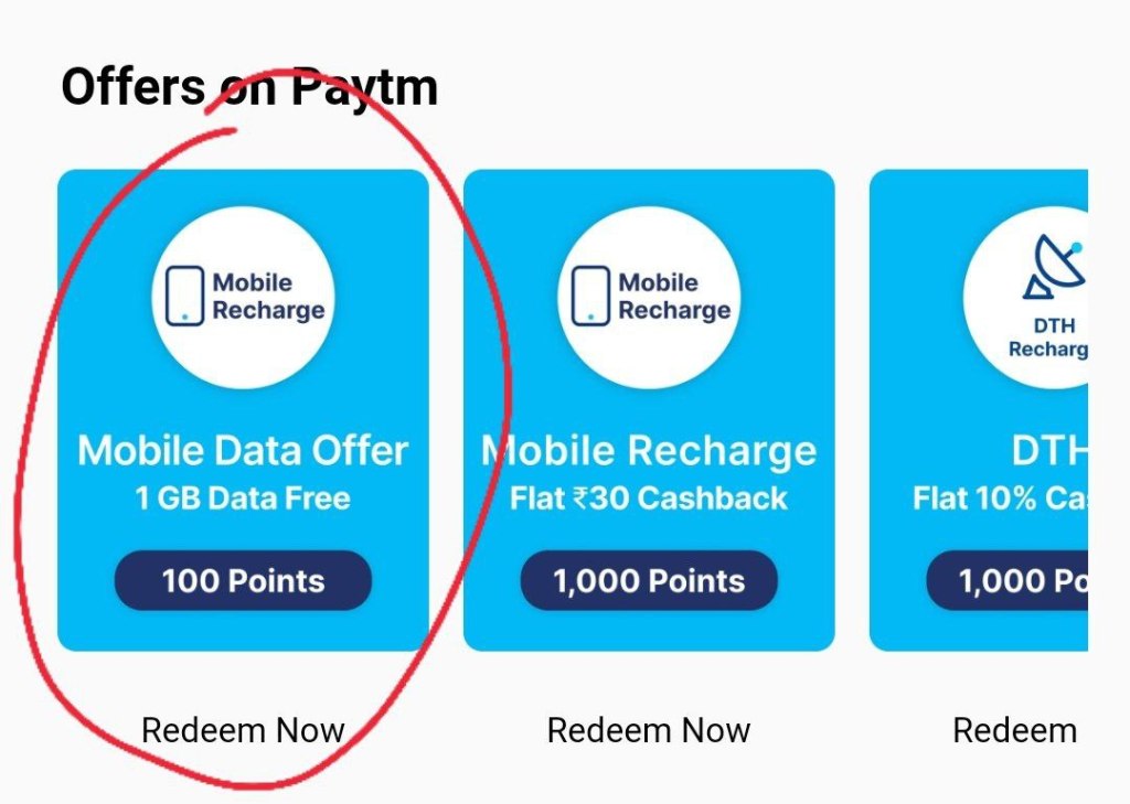 5. There you will see this 1 GB Free Data With 100 Paytm cashback Points